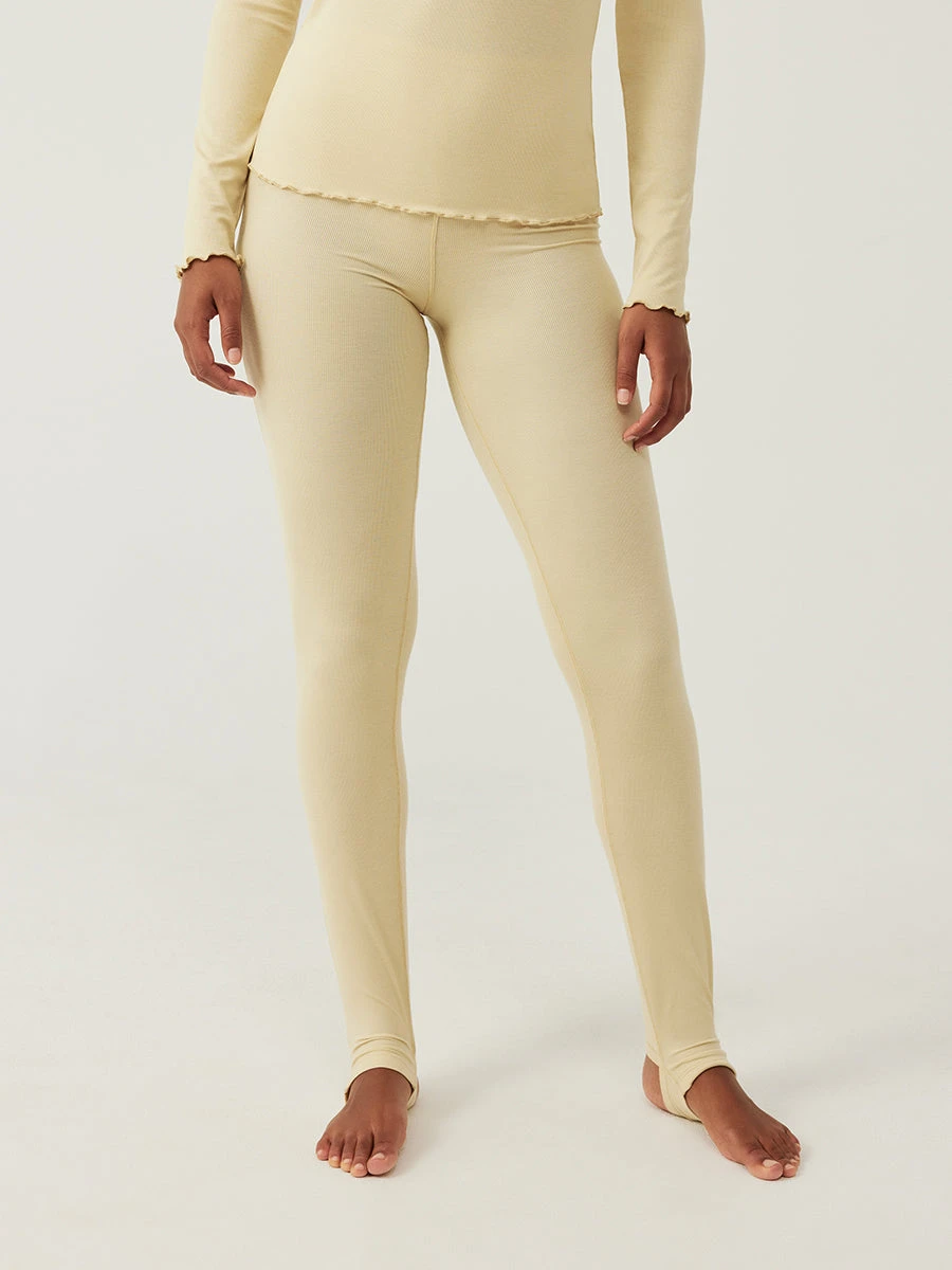 The perfect at-home legging or “barely there” base layer. Breathable, soft, and incredibly lightweight, made in our slightly textured SoftRib, featuring stirrup foot holds and a narrow, no-fuss waistband. Product formerly called SheerRib Stirrup Legging.